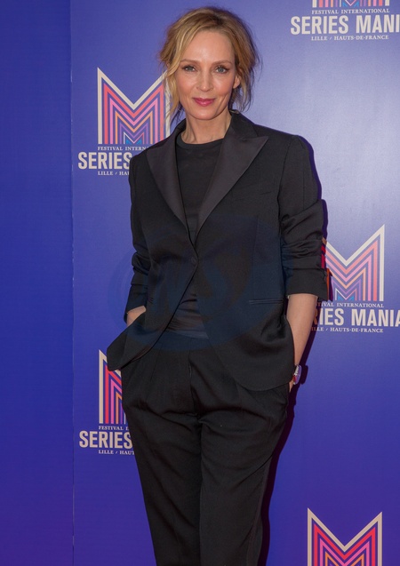 Uma Thurman w czarnym garniturze na International Series Mania Festival 2019