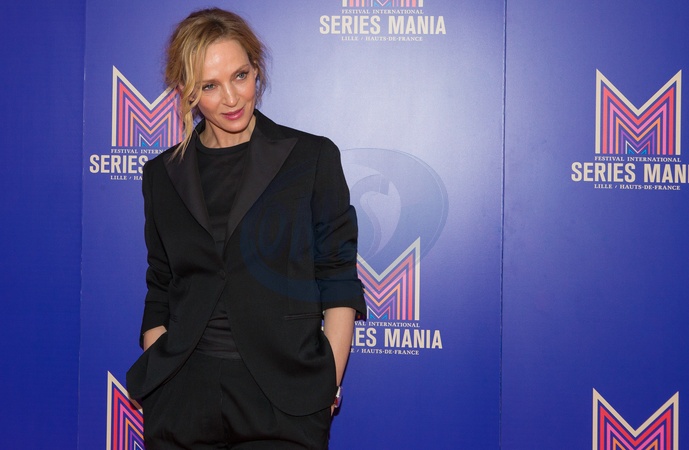 Uma Thurman w czarnym garniturze na International Series Mania Festival 2019