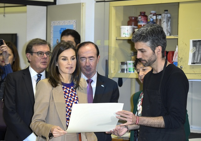 Krolowa Letizia podczas wizyty w Engraving And Design School