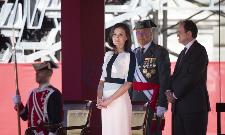 Elegancka krolowa Letizia z mezem podczas Guardia Civil 175th Anniversary