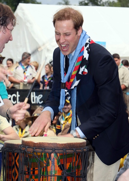 Ksiaze Willam razem ze skautami swietuje stulecie istnienia harcerstwa na zlocie the 21st World Scout Jamboree w Hylands Park, Chelmsford, Essex