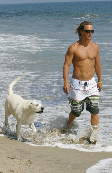 Aktor Matthew McConaughey na plazy w Malibu