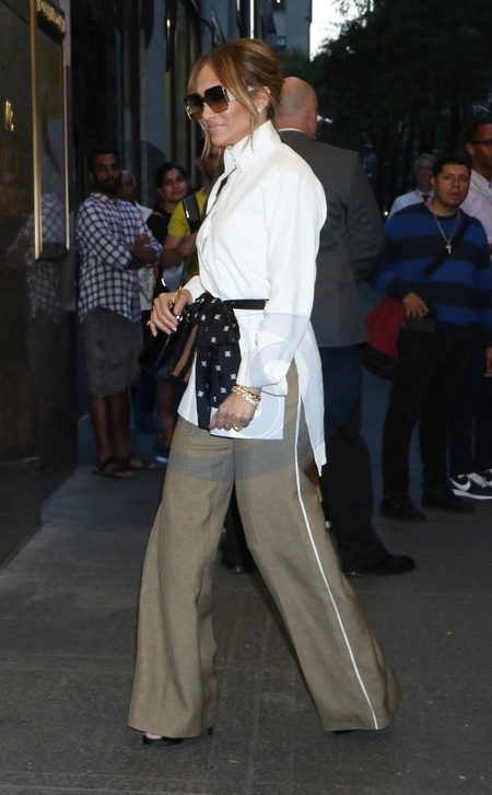 Jennifer Lopez pozdrawia fanow i reporterow przed Late Night