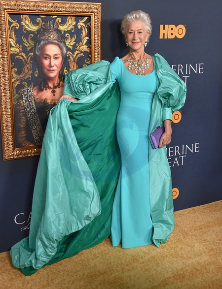 Helen Mirren w turkusowej sukni na premierze filmu Katarzyna Wielka