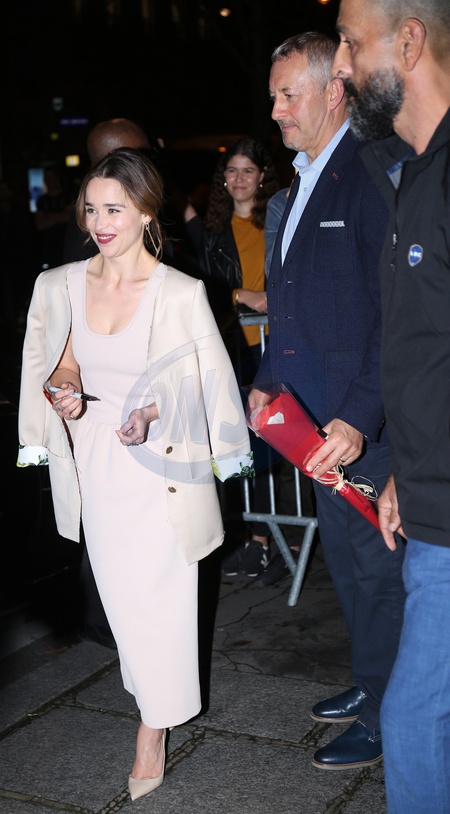 Emilia Clarke wychodzi z hotelu Royal Monceau Raffles w Paryzu