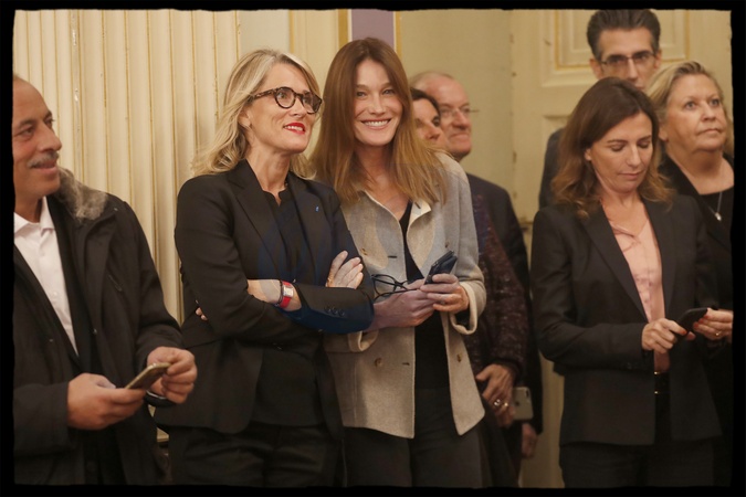 excl. Szczesliwa Carla Bruni i Nicolas Sarkozy na ceremonii Prix Edgar Faure