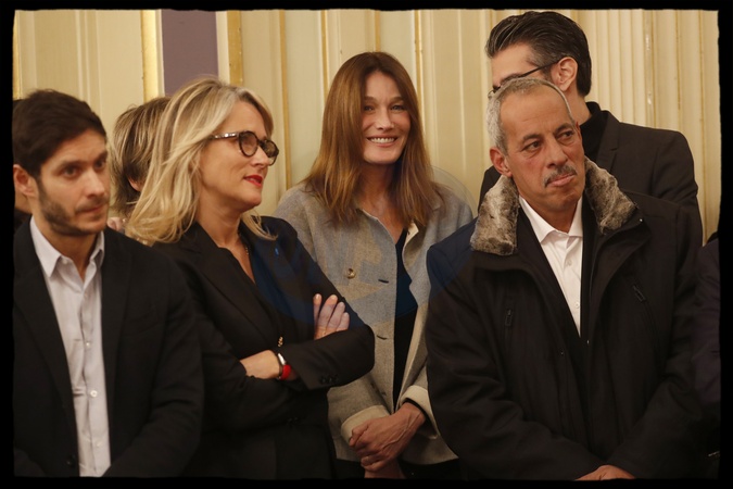 excl. Szczesliwa Carla Bruni i Nicolas Sarkozy na ceremonii Prix Edgar Faure