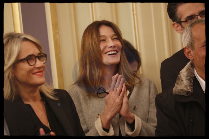 excl. Szczesliwa Carla Bruni i Nicolas Sarkozy na ceremonii Prix Edgar Faure