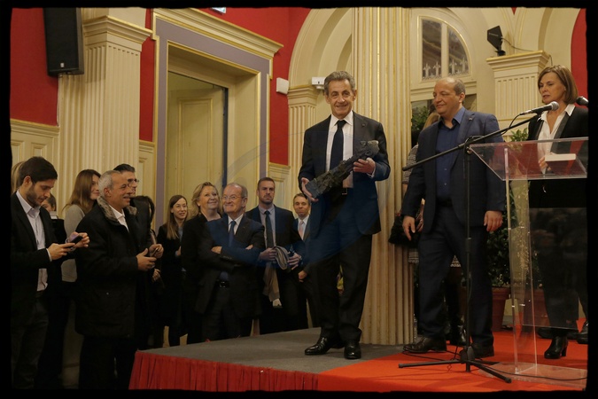 excl. Szczesliwa Carla Bruni i Nicolas Sarkozy na ceremonii Prix Edgar Faure