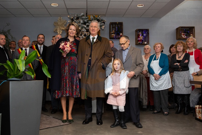 Krolowa Matylda i krol Filip na spotkaniu swiatecznym w schronisku