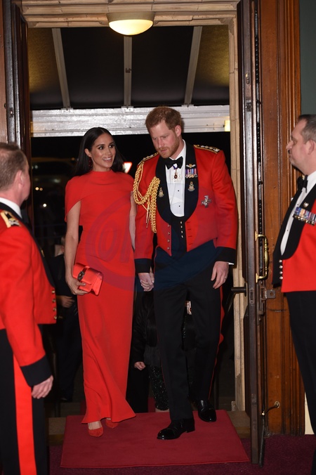 Meghan w czerwonej sukni i ksiaze Harry podczas Mountbatten Festival of Music