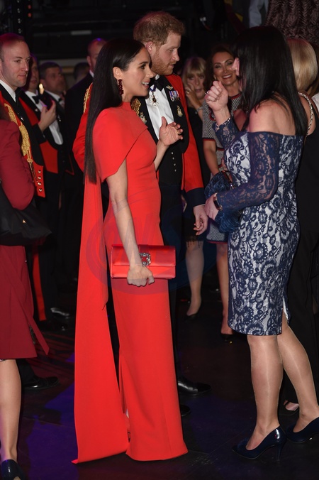 Meghan w czerwonej sukni i ksiaze Harry podczas Mountbatten Festival of Music