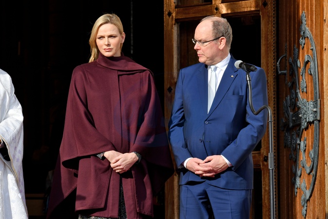 Ksiezna Charlene i ksiaze Albert podczas uroczystosci swiecenia nowego arcybiskupa