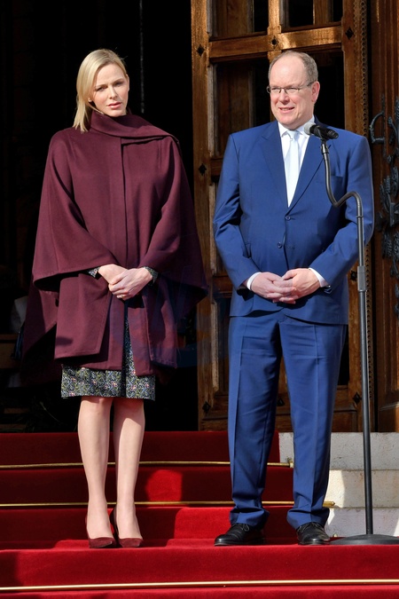 Ksiezna Charlene i ksiaze Albert podczas uroczystosci swiecenia nowego arcybiskupa