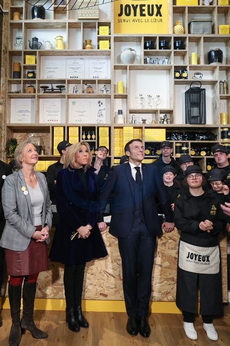 Macronowie w restauracji zatrudniajacej niepelnosprawnych
