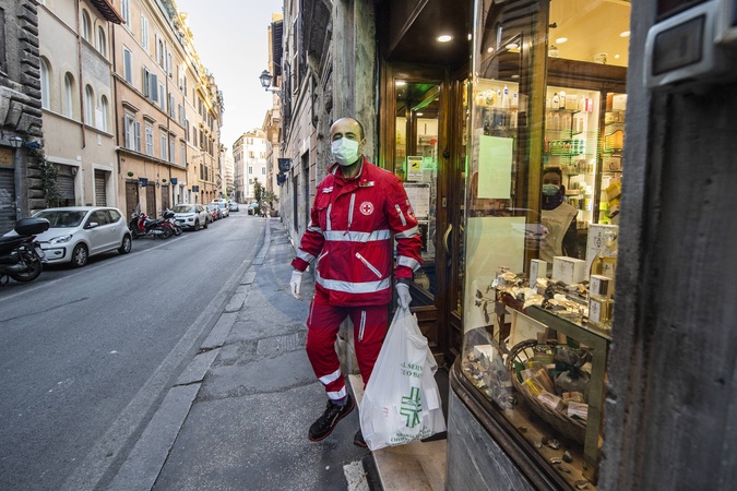 Koronawirus - Wolontariusze z Wloskiego Czerwonego Krzyza