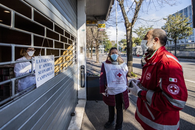 Koronawirus - Wolontariusze z Wloskiego Czerwonego Krzyza