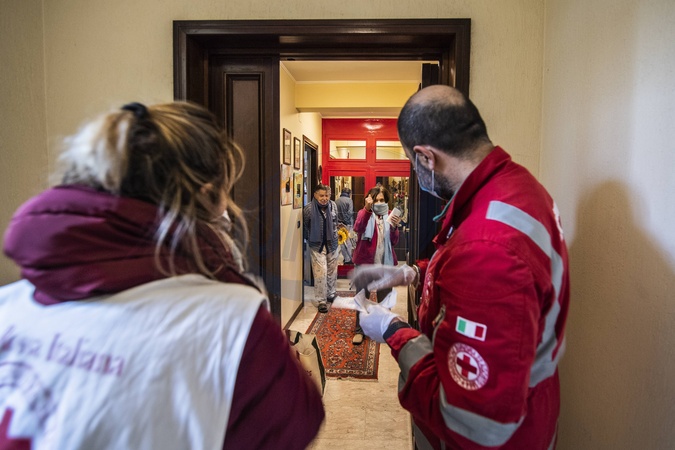 Koronawirus - Wolontariusze z Wloskiego Czerwonego Krzyza