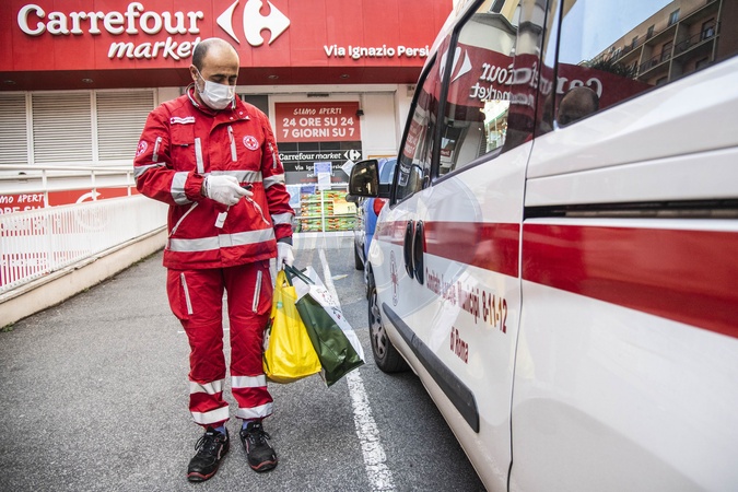 Koronawirus - Wolontariusze z Wloskiego Czerwonego Krzyza