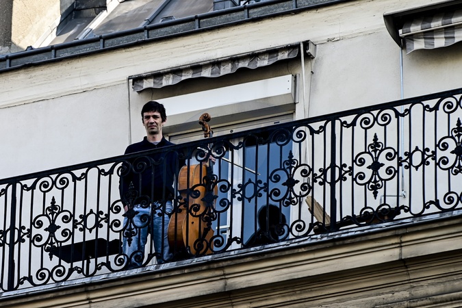 Koronawirus - Wiolonczelista gra na balkonie dla sasiadow