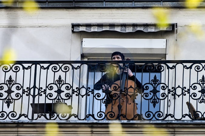 Koronawirus - Wiolonczelista gra na balkonie dla sasiadow