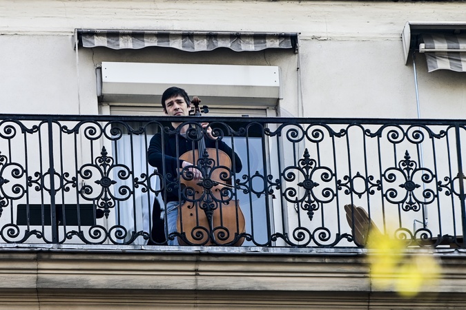 Koronawirus - Wiolonczelista gra na balkonie dla sasiadow