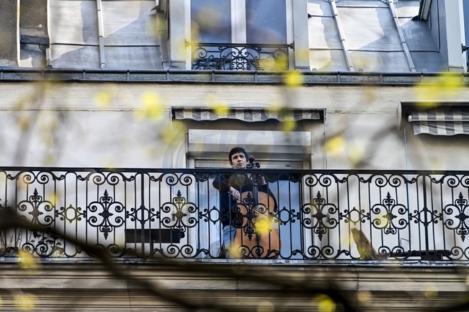 Koronawirus - Wiolonczelista gra na balkonie dla sasiadow