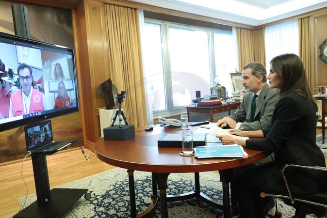 Krol Filip i krolowa Letizia na wideokonferencji z Czerwonym Krzyzem