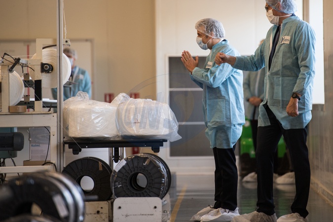 Emannuel Macron w fabryce masek chirurgicznych