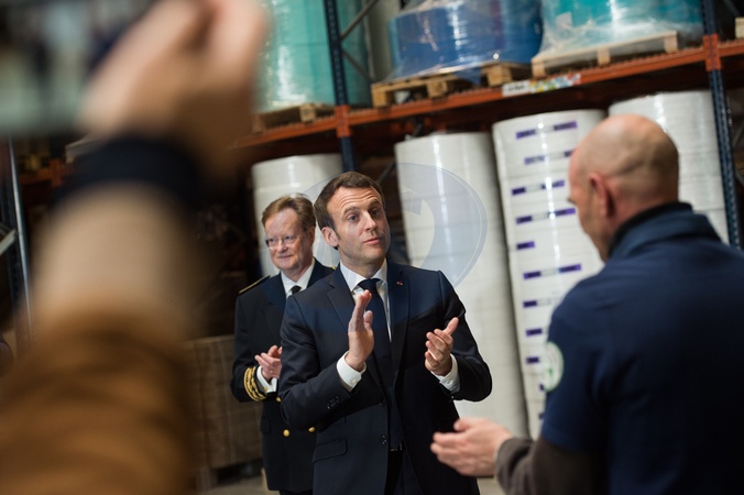 Emannuel Macron w fabryce masek chirurgicznych
