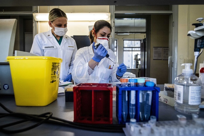 Koronawirus - Biolodzy i technicy pracuja w laboratorium
