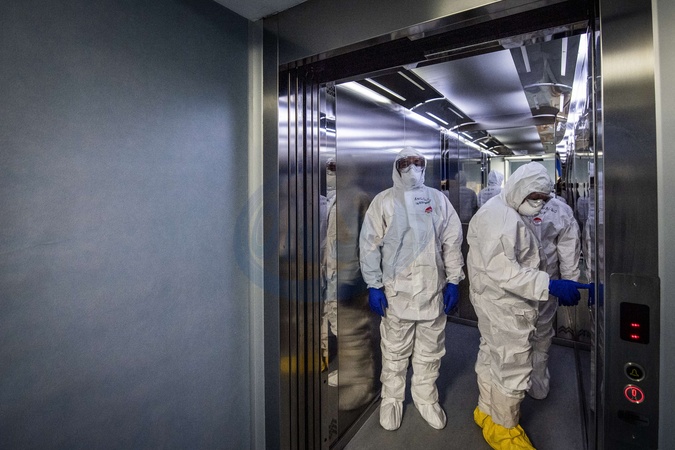Koronawirus - Biolodzy i technicy pracuja w laboratorium