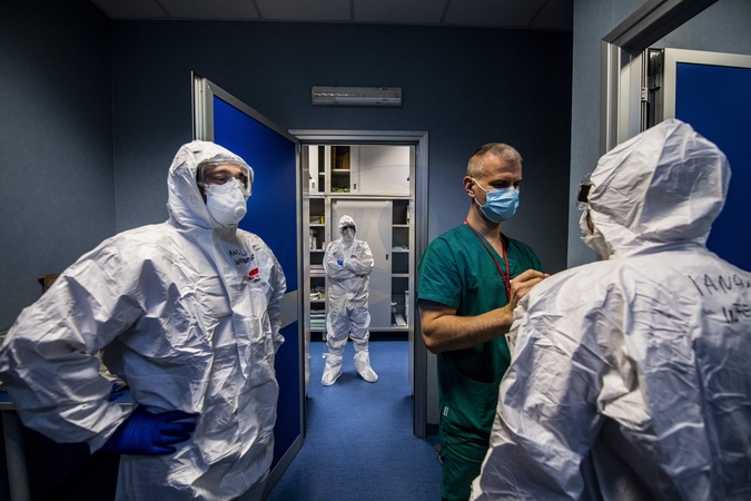 Koronawirus - Biolodzy i technicy pracuja w laboratorium