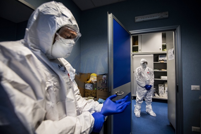 Koronawirus - Biolodzy i technicy pracuja w laboratorium