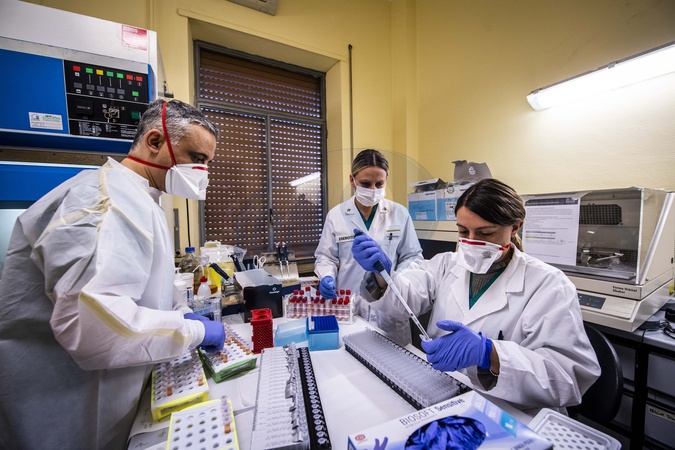 Koronawirus - Biolodzy i technicy pracuja w laboratorium
