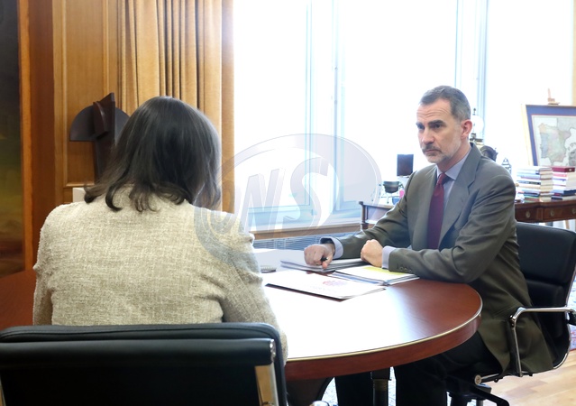 Krolowa Letizia i Krol Filip podczas videokonferencji