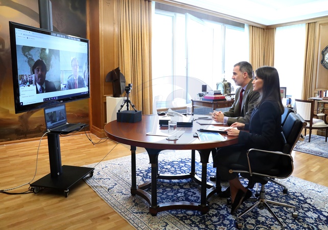 Krolowa Letizia i Krol Filip podczas videokonferencji