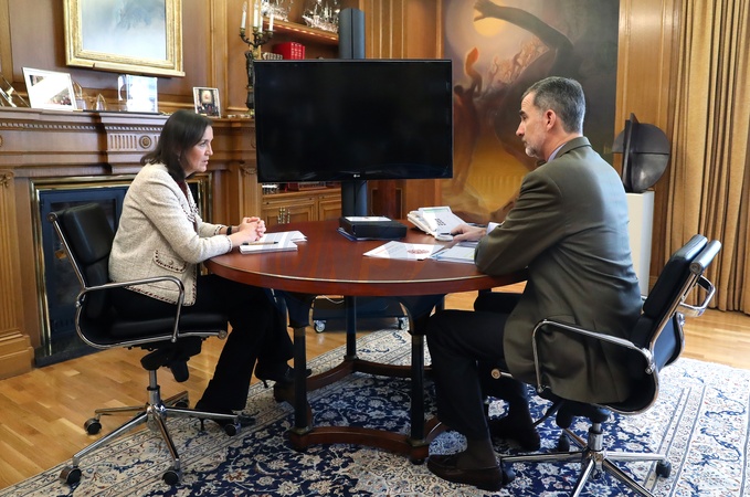Krolowa Letizia i Krol Filip podczas videokonferencji
