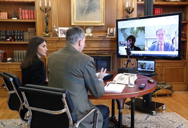 Krolowa Letizia i Krol Filip podczas videokonferencji