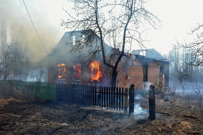 Pozar w Czarnobylu na Ukrainie