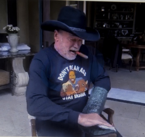 Arnold Schwarzengrer z corka czyszcza buty na kwarantannie