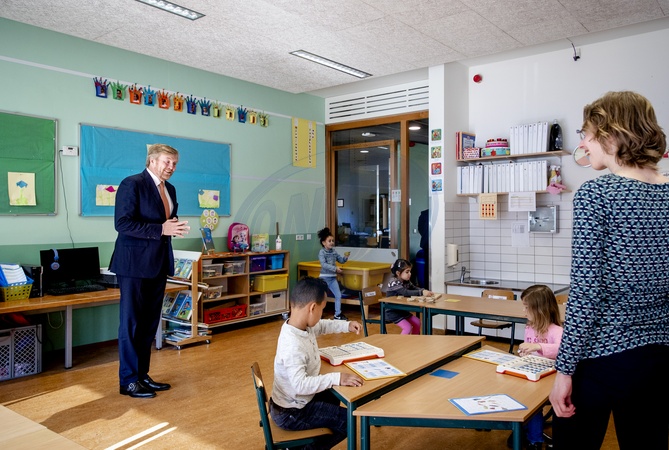 Krol Willem Alexander podczas wizyty w szkole podstawowej w Hadze