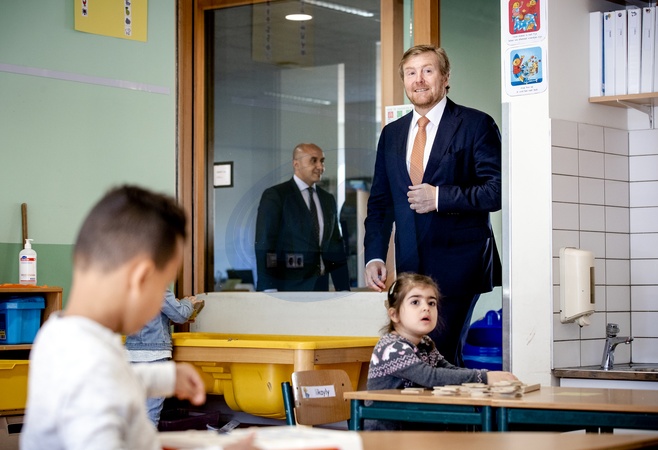 Krol Willem Alexander podczas wizyty w szkole podstawowej w Hadze