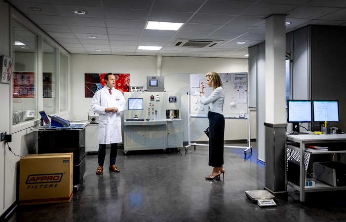 Krolowa Maxima odwiedzila fabryke maseczek ochronnych
