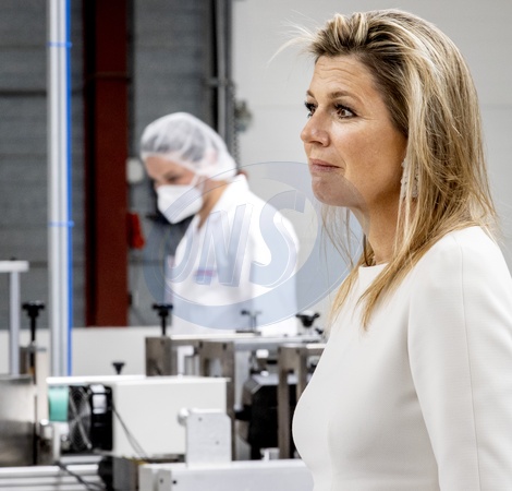 Krolowa Maxima odwiedzila fabryke maseczek ochronnych