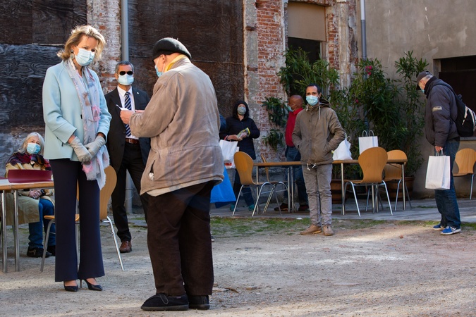 Krolowa Matylda z corka wydaja posilki dla bezdomnych