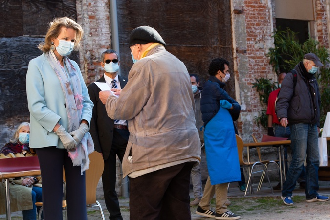 Krolowa Matylda z corka wydaja posilki dla bezdomnych