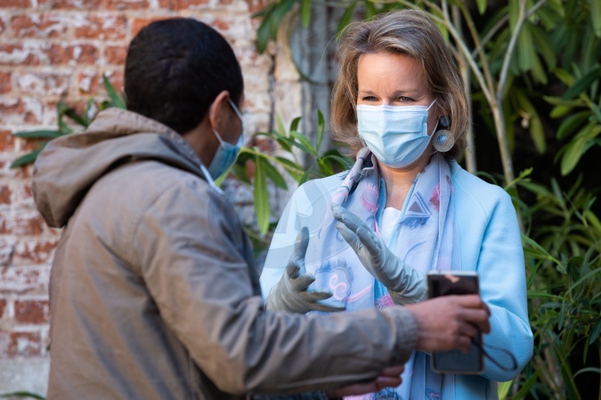 Krolowa Matylda z corka wydaja posilki dla bezdomnych