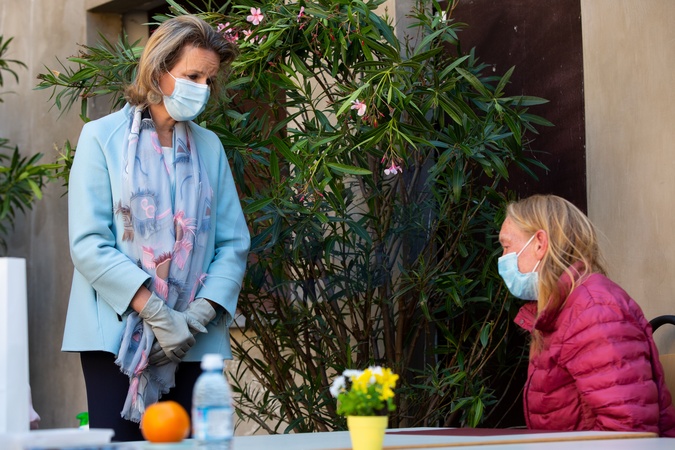 Krolowa Matylda z corka wydaja posilki dla bezdomnych