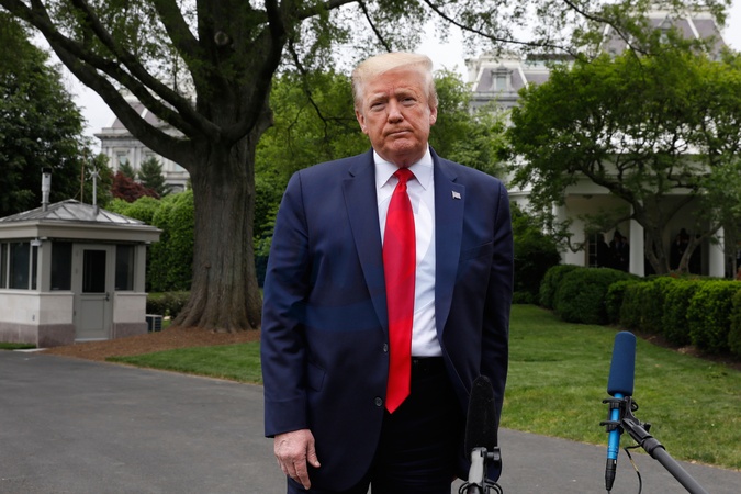 Donald Trump na konferencji przed Bialym Domem